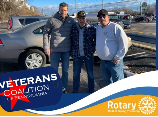 Shoutout to Spring Township Centennial Rotarians and Veterans Coalition of Pennsylvania -VCOP squeezed in another act of kindness in 2025. A heartfelt thank you to Steve Skrocki and Michael Weil for making possible the donation of a car to a veteran in need. This generous act is a powerful reminder of what can happen when a community comes together to support those who have served.